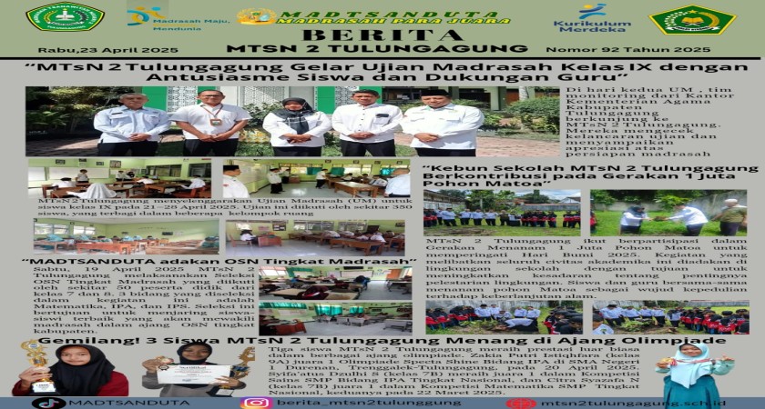 Berita Rabu MTsN 2 Tulungagung Hadir Setiap Pekan, Kini Memasuki Edisi ke-92