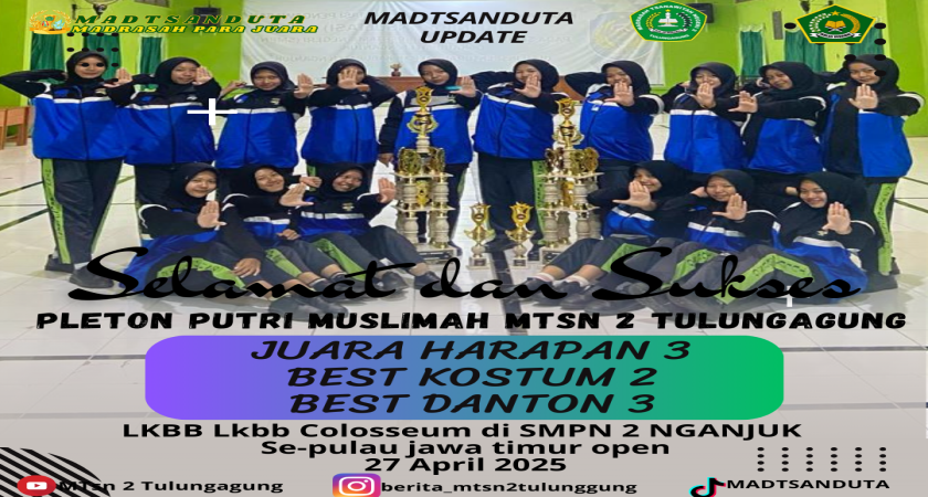 Dengan pencapaian ini, MTsN 2 Tulungagung kembali menunjukkan eksistensinya sebagai Madrasah Para Juara, tidak hanya dalam bidang akademik, tetapi juga dalam kegiatan ekstrakurikuler.